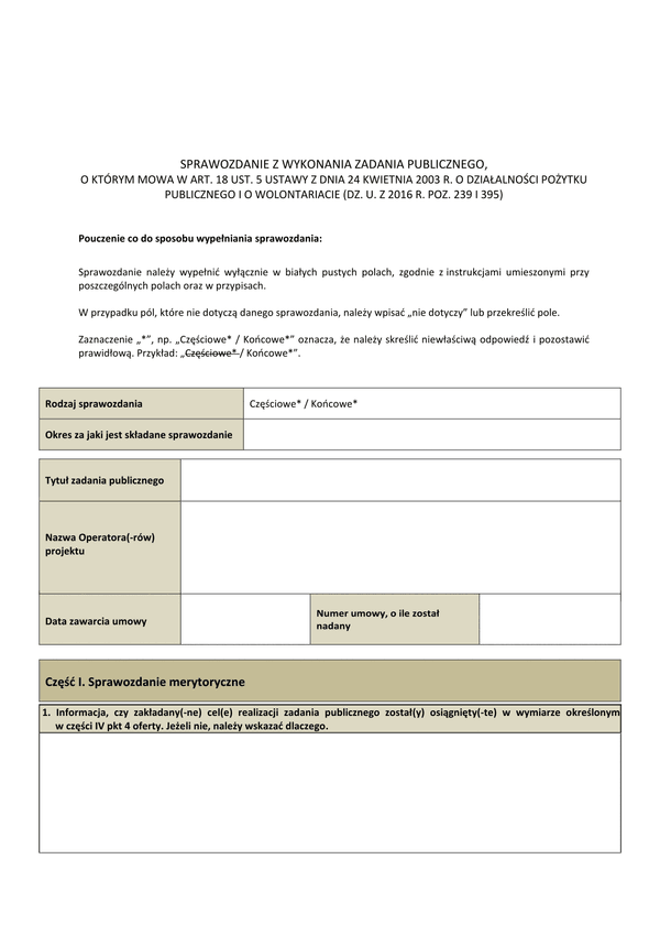 Sprawozdanie z wykonania zadania publicznego, o którym mowa w art. 18 ust. 5 ustawy z dnia 24 kwietnia 2003 r. o działalności pożytku publicznego i o wolontariacie (Dz. U. z 2016 r. poz. 239 i 395)