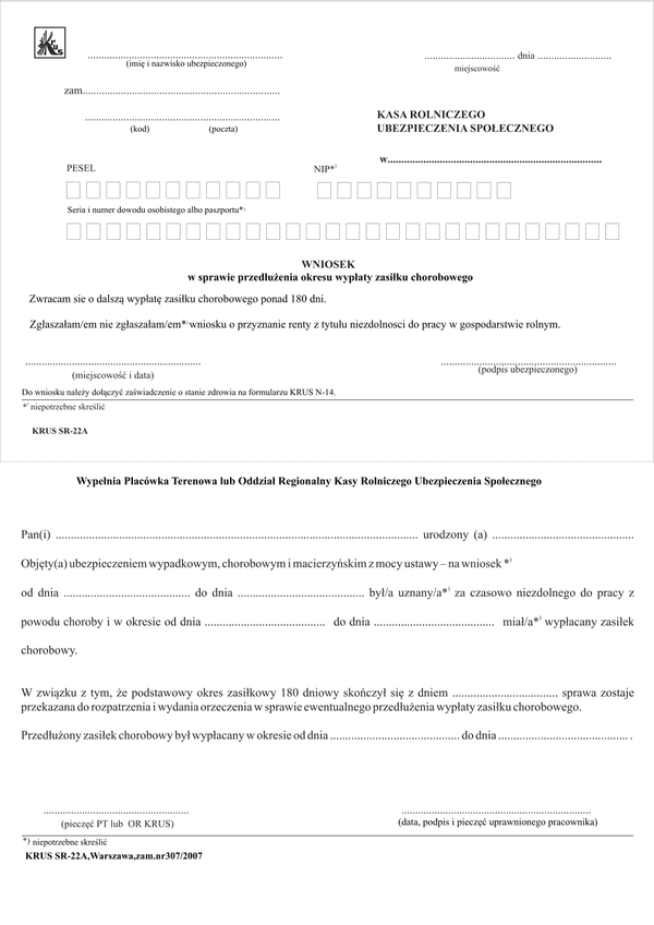 Na formularzu należy złożyć oświadczenie, że pracujemy w prowadzonym gospodarstwie rolnym oraz oświadczyć, iż wymieniona w tym druku osoba nie jest związana z nami stosunkiem pracy a w przypadku podjęcia przez tę osobę pracy w gospodarstwie rolnym, właściwa jednostka KRUS zostani