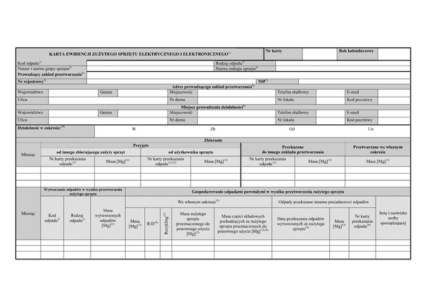 Karta ewidencji zużytego sprzętu elektrycznego i elektronicznego dotyczy prowadzącego zakład przetwarzania, o którym mowa w ustawie z dnia 29 lipca 2005 r. o zużytym sprzęcie elektrycznym i elektronicznym, w zakresie odpadów powstałych w wyniku demontażu zużytego sprzętu elektryc